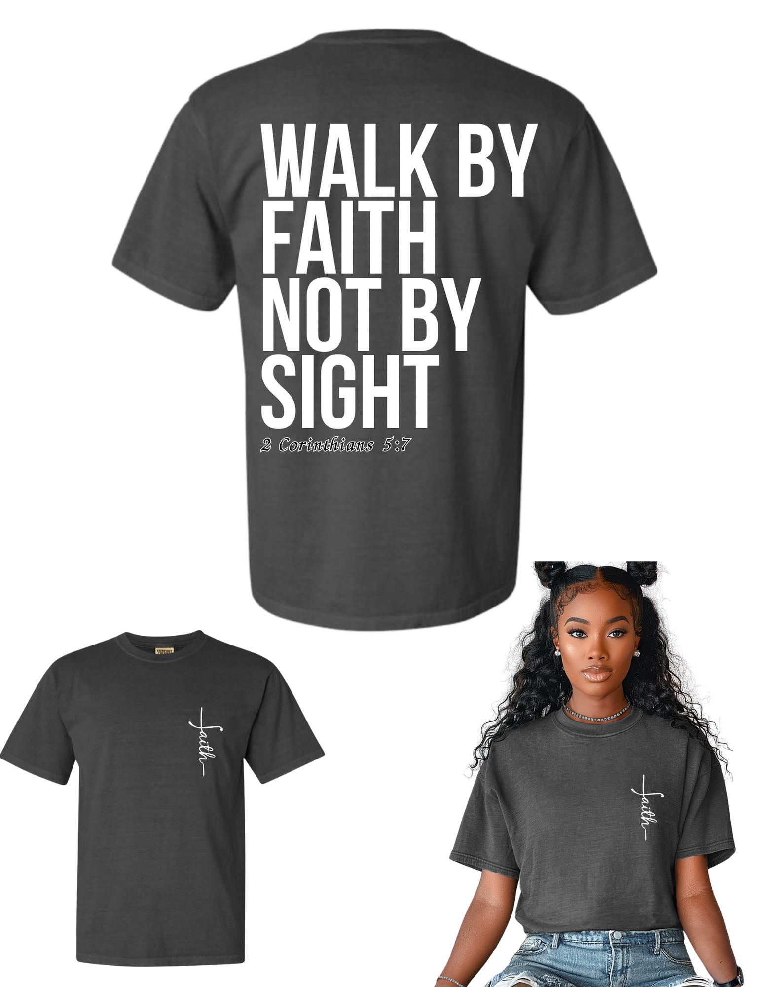 Embrace your faith with this vintage-washed cotton t-shirt, designed especially for Jesus lovers. The soft, breathable fabric ensures comfort all day, while the inspiring "Walk By Faith" message serves as a daily reminder to trust in your journey. Perfect for casual wear or sharing your beliefs with style, this tee blends timeless design with meaningful expression.