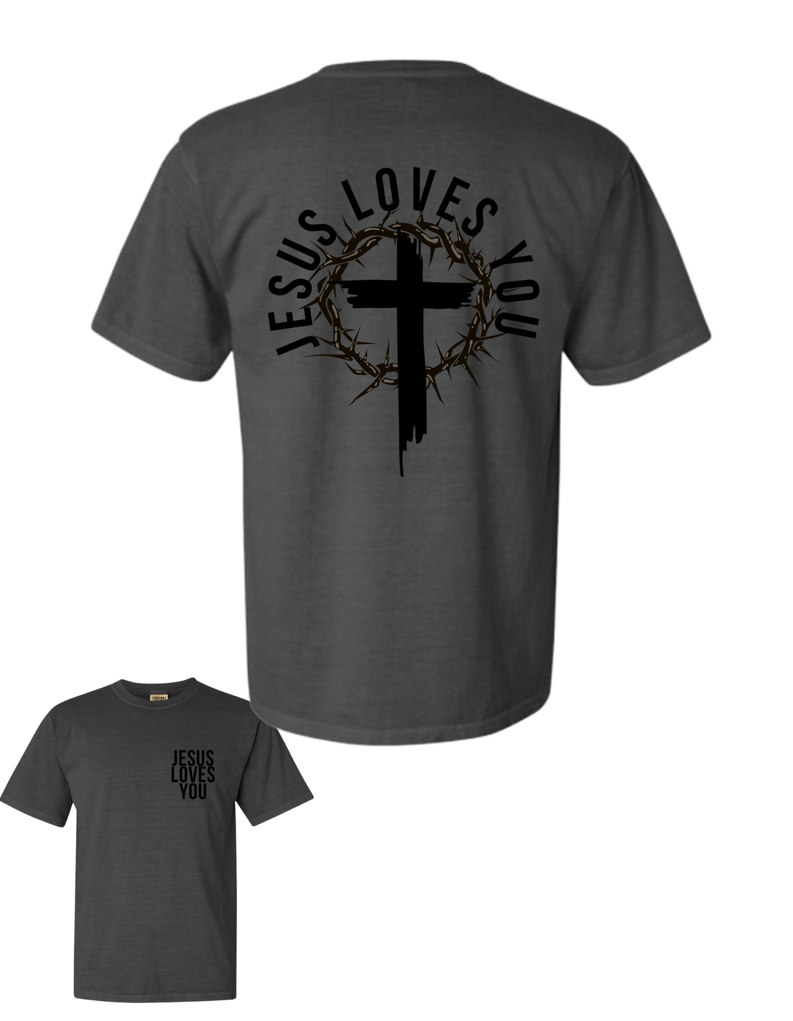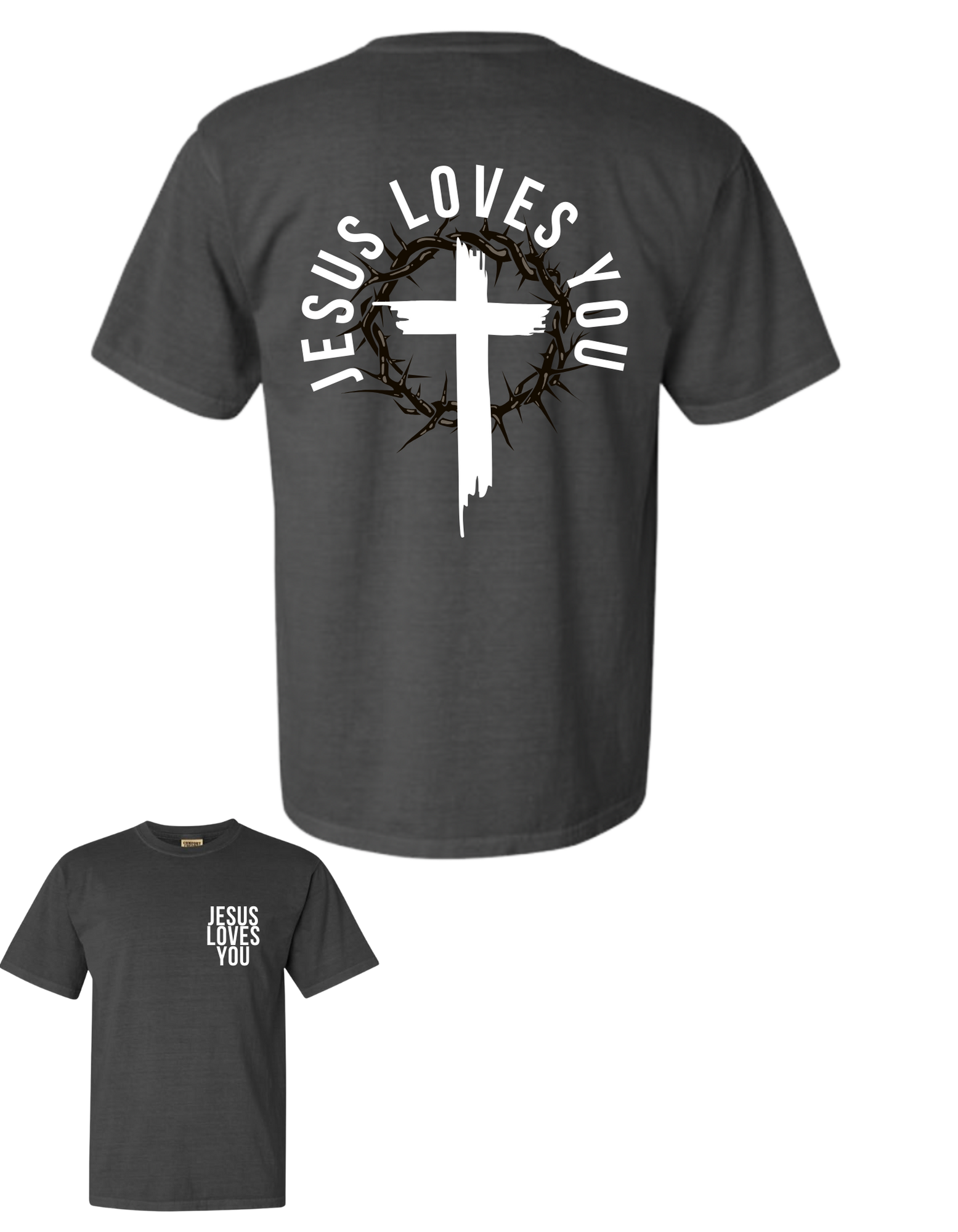 Embrace your faith with this stylish Jesus Loves You tee, crafted from soft vintage-washed cotton for lasting comfort. Its timeless design lets you proudly share your love for Jesus while staying effortlessly fashionable. Perfect for everyday wear, this tee combines meaningful expression with cozy durability.